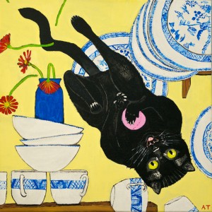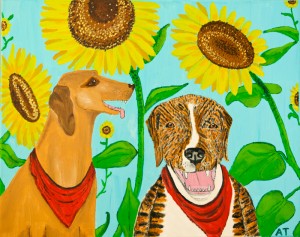 Trodglen: I have been painting exclusively animals (mostly cats and dogs) since July of 2008 when I began working with dogs at a doggie day care, boarding and grooming facility called Paws Playhouse. I initially painted the dogs of Paws Playhouse to decorate the facility and amuse the workers and clients. Gradually with support and encouragement I began to paint in this style more and more frequently until it became a life calling. There will be between fifteen and twenty paintings in the show of various sizes, depending on what will fit. The paintings chosen will be based on the smile factor- what I think will make me happiest and hopefully the viewer as well. It is never too hard to pick. I generally keep the best ones of my dog Jack for myself, Like Dorian Grey, Jack has a painting in the attic and…