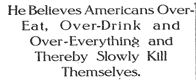 I would love to know what the fellow mentioned above from 100 years ago would make of the overeating and excess of today.